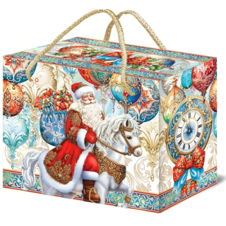 Чемоданчик в легком воздушном дизайне, содержит большое количество современных печатных технологий. Украшен изображениями ёлочных игрушек. Золотые ручки входят в обязательный комплект.